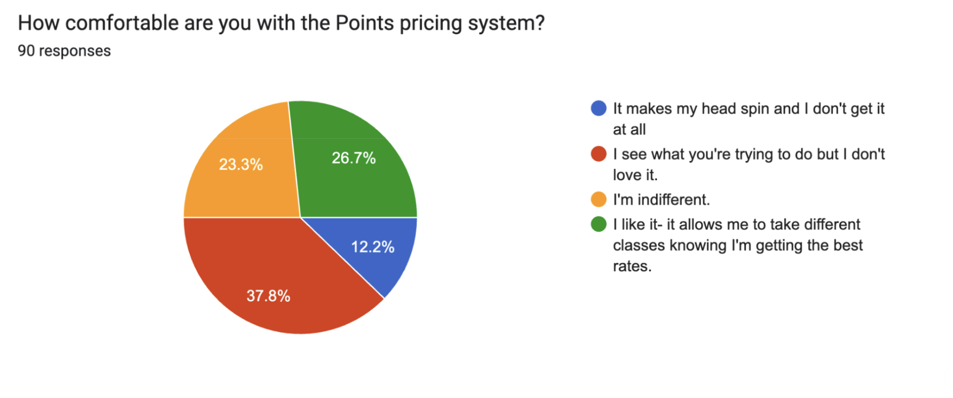 Thank you for your feedback on our Flexible Points System. While opinions were mixed, the message was clear. Recently, our Momence booking system has introduced new features that allow us to achieve the benefits of the points system in a simplified manner.